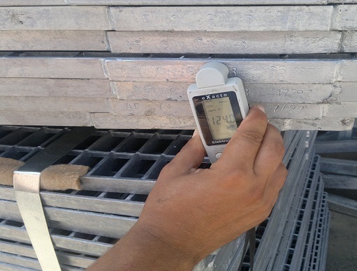 ضخامت سنجی گالوانیزه گریتینگ، بازرسی از ضخامت گالوانیزه گریتینگ توسط دستگاه الکومتر کالیبره انجام می شود. استاندارد ضخامت گالوانیزه برای ضخامتهای مختلف در جداول متفاوتی بیان شده است. میزان ضخامت پوشش گالوانیزه گرم برای گریتینگ های معمولی حدود 80 تا 85 میکرون به صورت متوسط می باشد.